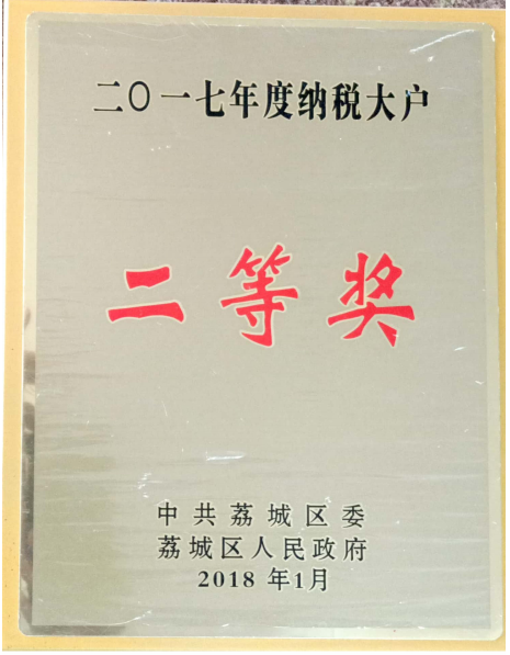 2019年01月 中共荔城區(qū)委、荔城區(qū)人民政府授予“2018年度納稅大戶(hù)二等獎(jiǎng)”榮譽(yù)。